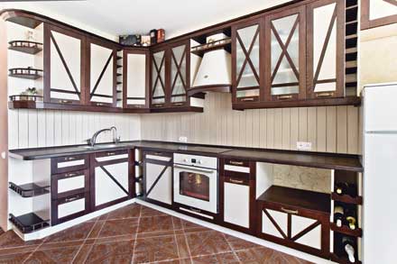 Индивидуальный проект по вашим размерам. · кухонные гарнитуры · мебель для гостиных · мебель для спальни · детские комнаты · шкафы-купе · гардеробные комнаты Весь комплекс услуг по проектированию и установке, включая уборку помещения. Точность, аккуратность, гарантия качества, соблюдение сроков выполнения работ. «Шале» Фасады: массив сосны. Столешница: пластик.