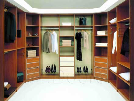 Гардеробная комната с использованием элементов системы Хромос и ламинированной плиты.