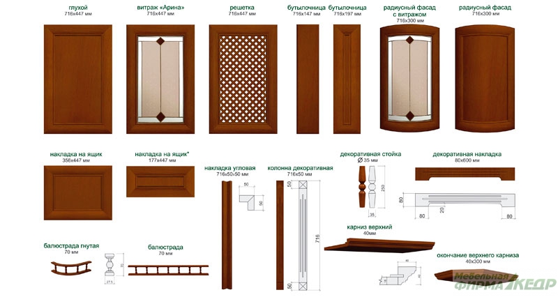 Декоративные элементы: массив дуба.