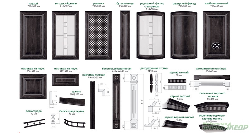 Декоративные элементы: массив дуба.