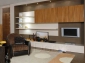 Декор корпуса «Капуччино», распашные фасады «Лео Вуд». Книжные полки оснащены встроенными светильниками «Доппио».
