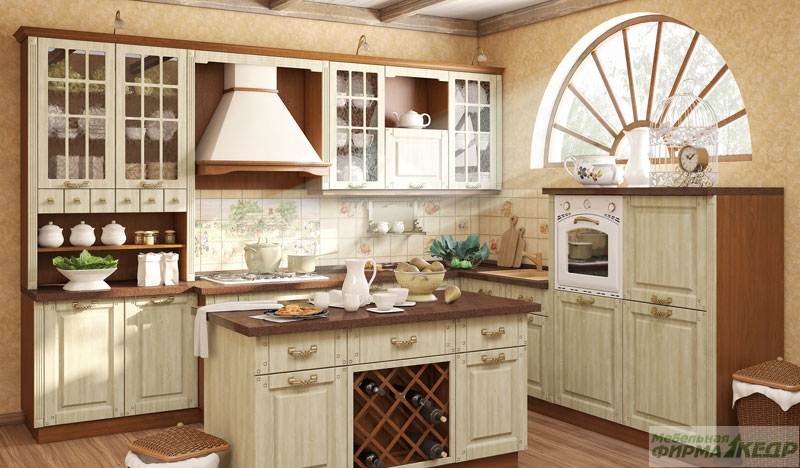 Модель выполнена в рустикальном стиле, который близок к стилю кантри. Имитация ярко выраженой грубой почти не обработанной фактуры — трещины, признаки старения, гвоздики и сучки становятся своеобразным декором на фасадах кухни. «Рустика» воплощает в себе очарование провинции, гармонию и чистоту простых линий.