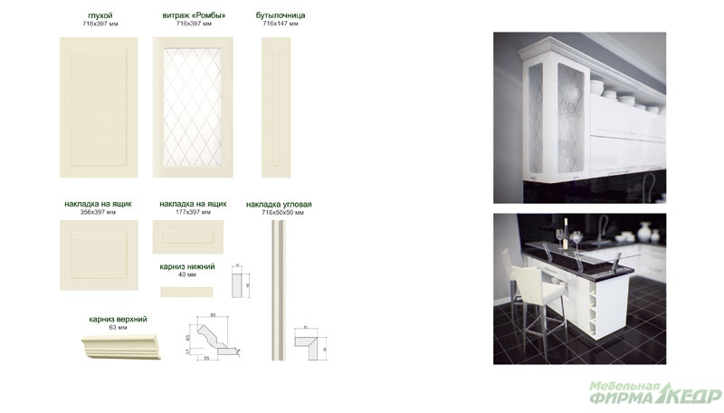 Основа: плита МДФ толщиной 19 мм+ХДФ 3 мм, облицованная глянцевой плёнкой ПВХ.